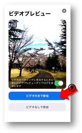 「ビデオ付きで参加」を押して開始しますが、画像が表示されるまで多少時間がかかる場合があります。しばらくお待ちください。